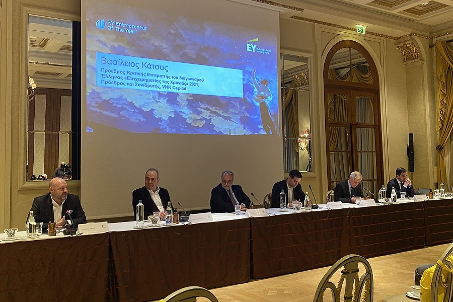 Παράλληλα, και για πρώτη φορά στην ιστορία του θεσμού στην Ελλάδα, απονεμήθηκε τιμητική «Διάκριση Συνολικής Επιχειρηματικής Προσφοράς», στον κ. Ελευθέριο Σαΐτη, Ιδρυτή και Πρόεδρο των εταιρειών, Kronos, Intercomm Foods και Agrophoenix, αναγνωρίζοντας την εξαιρετική επιχειρηματική του πορεία και τη συνεισφορά του στην εθνική οικονομία. Ο κ. Γεώργιος Γεράρδος της ΠΛΑΙΣΙΟ COMPUTERS, θα εκπροσωπήσει την Ελλάδα στον διεθνή διαγωνισμό στο Μόντε Κάρλο τον Ιούνιο του 2022, όπου, μαζί με τους νικητές του αντίστοιχου εθνικού βραβείου από 60 περίπου χώρες, θα διαγωνιστεί για τον τίτλο «ΕΥ World Entrepreneur Of The Year» 2022.