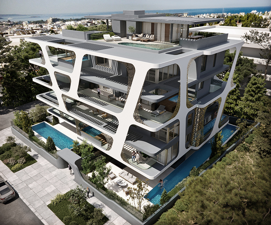 Αναλυτικότερα, το Vital Blue, η κατασκευή του οποίου ολοκληρώνεται την άνοιξη του 2024, είναι ένα αστικό οικιστικό κτίριο με οκτώ πολυτελείς κατοικίες πολλαπλών επιπέδων με την προσέγγιση κατασκευής του να διαφέρει από τη συνηθισμένη, βασιζόμενη σε τρεις κυρίως άξονες. Τον δομικό σχεδιασμό, με ειδική στατική μελέτη για την παροχή μέγιστης ανθεκτικότητας σε περίπτωση σεισμού, και την ανάδειξη της αρχιτεκτονικής δομής του κτιρίου που διακρίνεται από την ελαφρότητα, τα μεγάλου πλάτους ανοίγματα και τα μεγάλα μπαλκόνια με τις πισίνες.