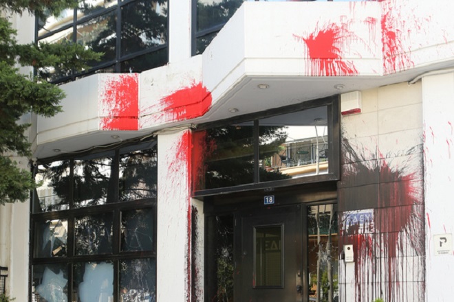Μέλη της ομάδας έσπσσαν τζαμαρίες και πέταξαν μπογιές στα γραφεία της Ελληνικής Διαχειριστικής Εταιρείας Υδρογονανθράκων στους Αμπελόκηπους.