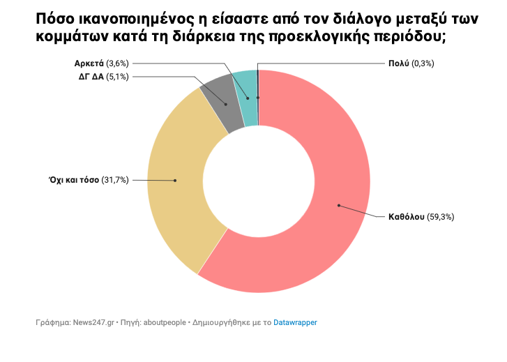 Η ικανοποίηση από τον διάλογο μεταξύ των κομμάτων κατά την διάρκεια της προεκλογικής περιόδου δεν ικανοποίησε τους 9 στους 10 ερωτώμενους.