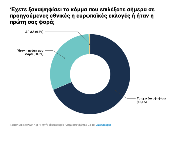 3 στους 10 ερωτώμενους δήλωσαν ότι το κόμμα που επέλεξαν χθες, δεν το είχαν ξαναψηφίσει στο παρελθόν.