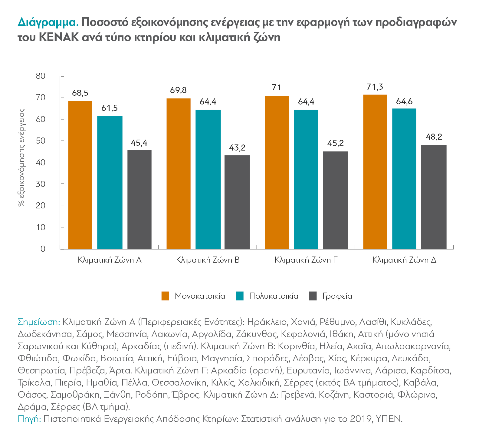- Βελτιώσεις στον Κανονισμό Ενεργειακής Απόδοσης Κτηρίων (ΚΕΝΑΚ, κτήρια σχεδόν μηδενικής κατανάλωσης ενέργειας) με καθορισμό σύγχρονων προδιαγραφών και αποτελεσματικό έλεγχο συμμόρφωσης.