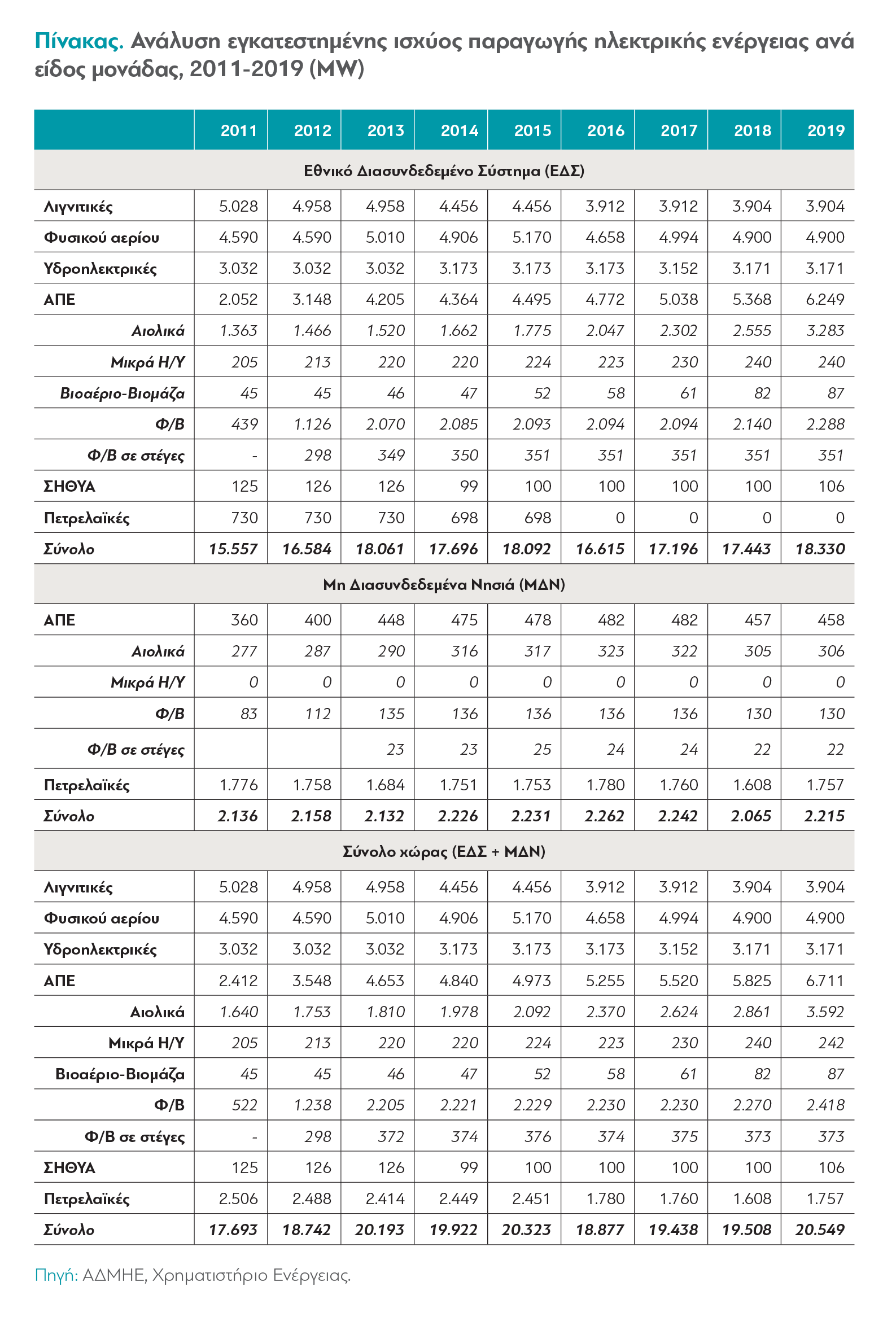 - Μηδενικό μερίδιο του λιγνίτη στην ηλεκτροπαραγωγή έως το 2028.