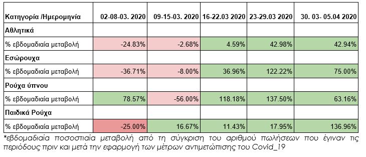 Η έρευνα διεξήχθει τις πρώτες μέρες του Απριλίου με τη συμμετοχή στελεχών 41 ηλεκτρονικών καταστημάτων μόδας της χώρας και με στοιχεία της αγοραστικής συμπεριφοράς που αφορούν στην περίοδο πριν και μετά την εφαρμογή των μέτρων κλεισίματος των καταστημάτων και την απαγόρευσης της κυκλοφορίας.