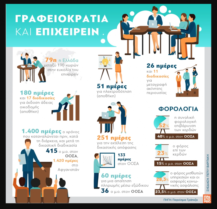 Το γράφημα αποτυπώνει στοιχεία της Παγκόσμιας Τράπεζας για το πώς η γραφειοκρατία επηρεάζει την επιχειρηματικότητα / ΑΠΕ-ΜΠΕ / Δημοσιογραφική επιμέλεια: Δημ. Φραγκουλιώτης