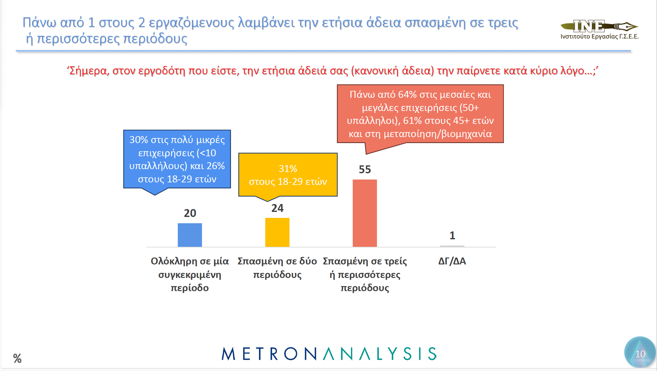 Η λήψη της ετήσιας άδειας συνίστανται κατά κύριο λόγο σε συνεννόηση εργαζομένου-εργοδότη, με το 77% να αναφέρει κοινή απόφαση. Η ευελιξία στην οργάνωση της άδειας συντελεί στην καλύτερη διαχείριση των επαγγελματικών και προσωπικών υποχρεώσεων.