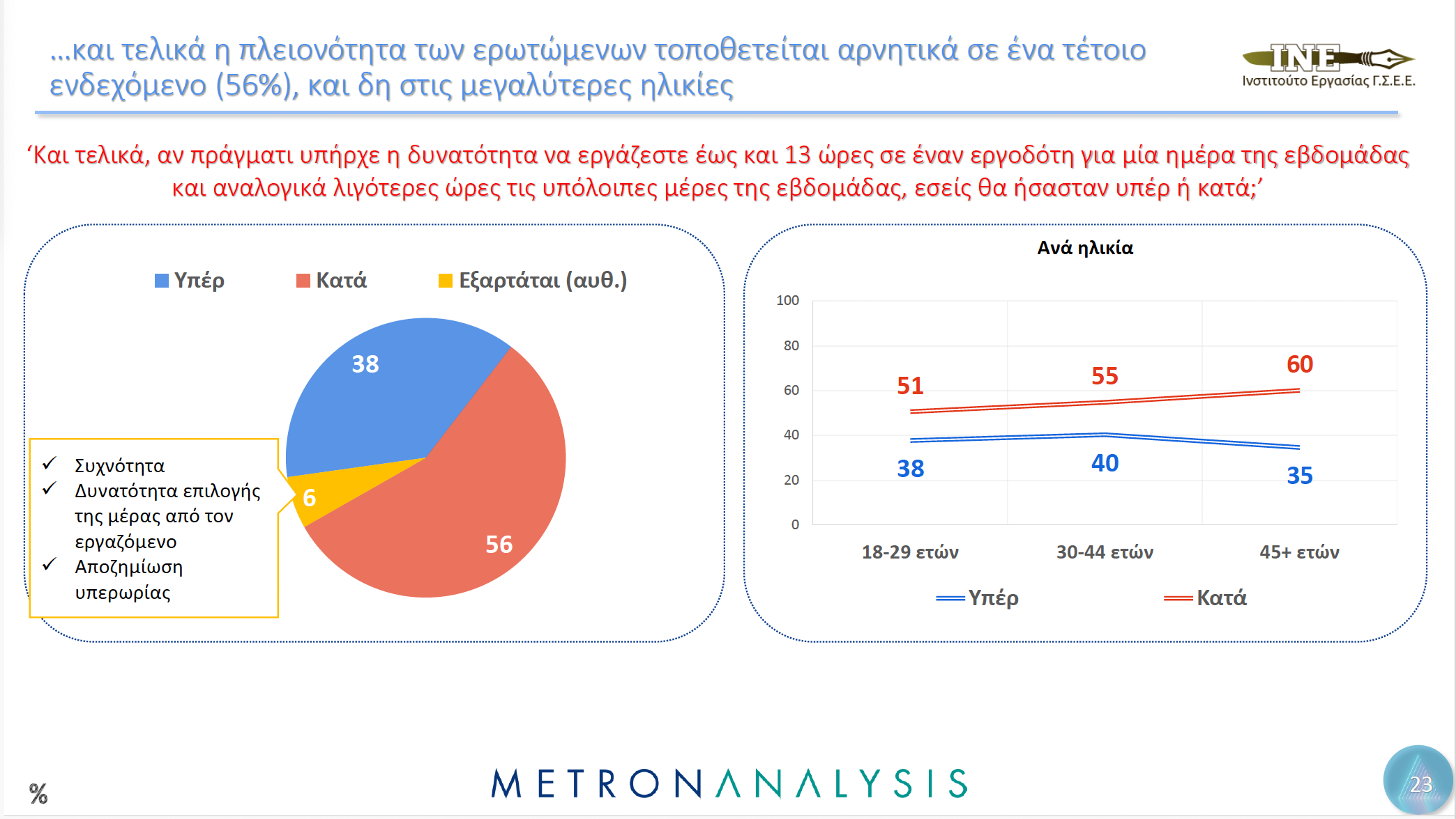 Το 56% εκφράζει ανησυχίες και τάσσεται κατά της διεύρυνσης αυτής της πρακτικής, κυρίως λόγω της αρνητικής επίδρασης στην προσωπική και οικογενειακή ζωή, ιδίως μεταξύ των γυναικών.