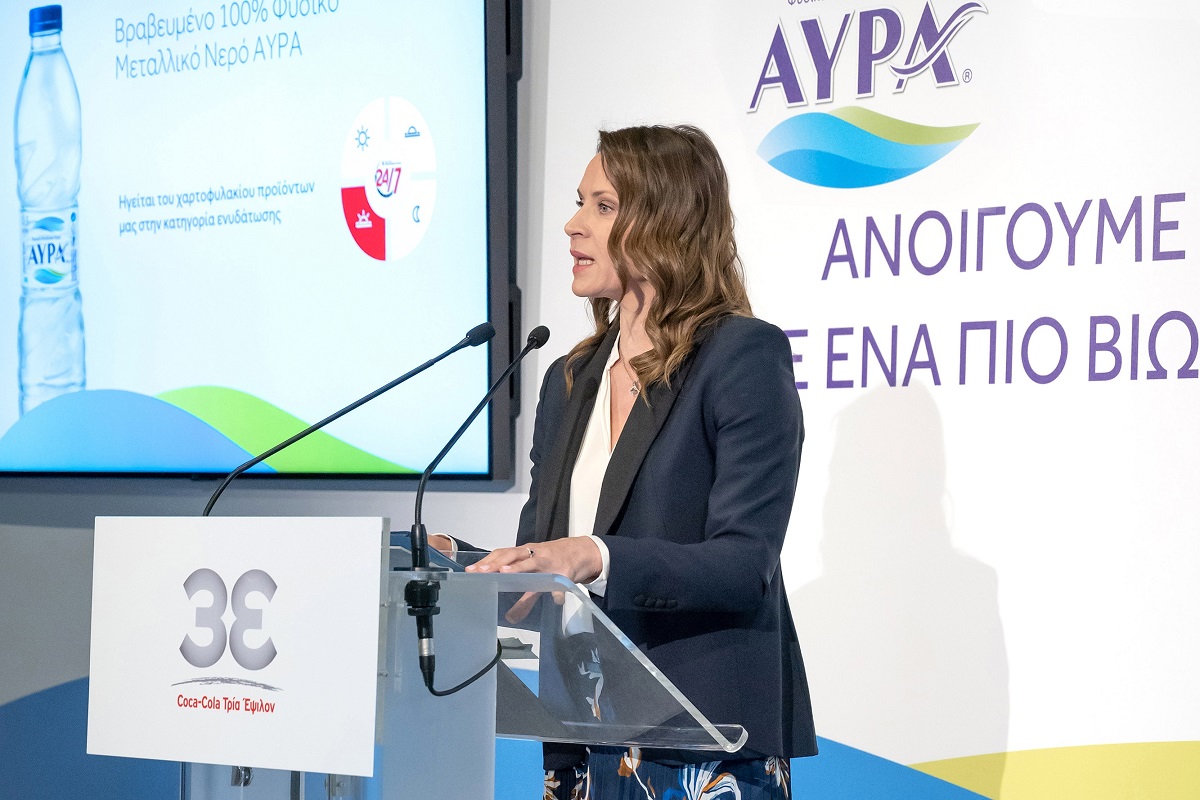 Η Μαρία Αναργύρου – Νίκολιτς, Γενική Διευθύντρια της Coca-Cola Τρία Έψιλον για Ελλάδα & Κύπρο, δήλωσε: «Το εργοστάσιο του Φυσικού Μεταλλικού Νερού ΑΥΡΑ είναι μία υπερσύγχρονη μονάδα, με σημαντικό οικονομικό και κοινωνικό αποτύπωμα για την ευρύτερη περιοχή. Είναι μία μονάδα πρότυπο καινοτομίας και βιωσιμότητας. Είμαστε ιδιαίτερα υπερήφανοι που ανακοινώνουμε τον στόχο του εργοστασίου να γίνει κλιματικά ουδέτερο μέχρι το 2025, ενώ παρουσιάζουμε ταυτόχρονα και τη νέα πιο βιώσιμη συσκευασία με μη αποσπώμενο καπάκι. Είναι μία στιγμή ορόσημο για την εταιρεία μας και για την στρατηγική μας για μηδενικές εκπομπές διοξειδίου του άνθρακά μέχρι το 2040, με όραμα έναν καλύτερο κόσμο για όλους».