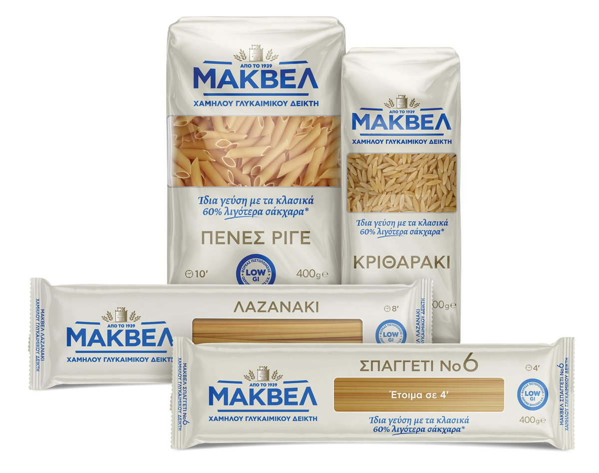 Μία νέα σειρά ζυμαρικών με χαμηλό γλυκαιμικό δείκτη λάνσαρε πρόσφατα στην ελληνική αγορά η EURIMAC, η εταιρεία πίσω από το γνωστό brand ΜΑΚΒΕΛ. Η νέα αυτή σειρά απευθύνεται σε όσους προσέχουν τη διατροφή τους, χωρίς να θυσιάζουν τη γεύση. Καλύπτει επίσης τις ανάγκες όλων όσων θέλουν να διατηρήσουν τον έλεγχο στα επίπεδα του σακχάρου στο αίμα τους.