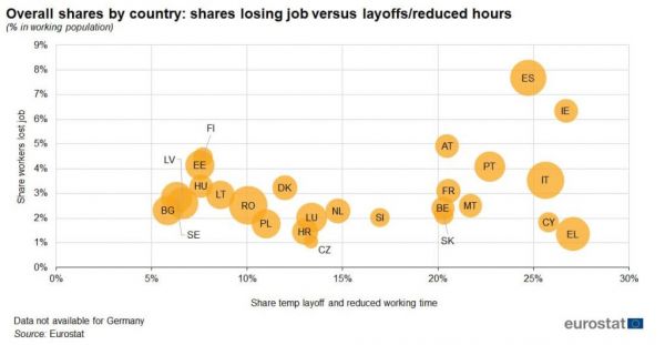 Eurostat: Η Ελλάδα μεταξύ των χωρών με τις λιγότερες απώλειες θέσεων εργασίας στο lockdown (Χάρτης)