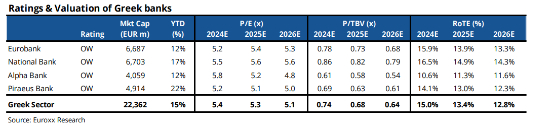 Ειδικότερα, ιδιαίτερα ανοδικές παραμένουν οι  προοπτικές για τον ελληνικό τραπεζικό τομέα χάρη στα ισχυρά μακροοικονομικά δεδομένα, την ευνοϊκή δομή της αγοράς και των χαμηλών αποτιμήσεων, σύμφωνα με τη χρηματιστηριακή Euroxx.