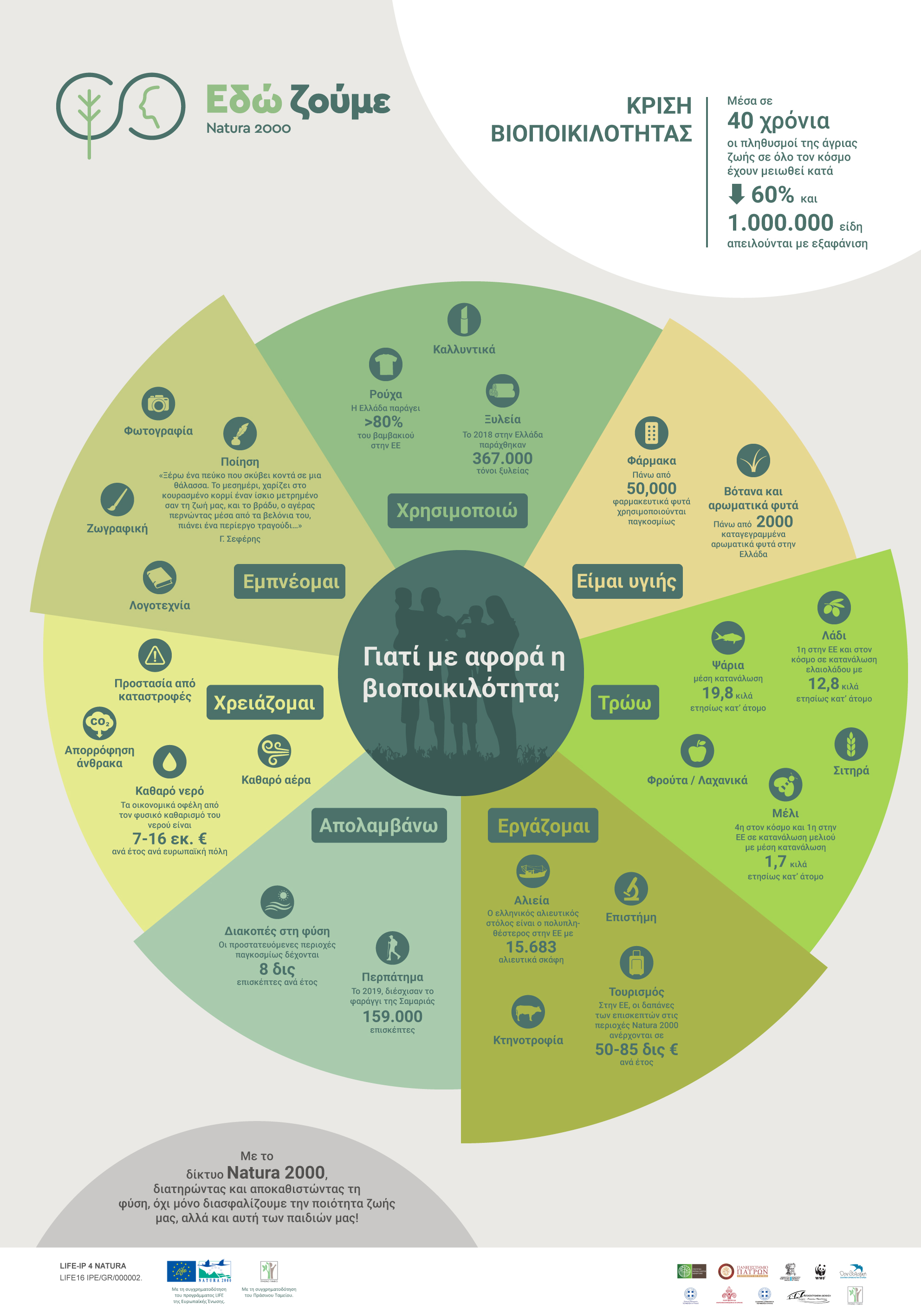 Το δίκτυο Natura 2000, ακριβώς επειδή έχει σχεδιαστεί ώστε να μην αποκλείει τις ανθρώπινες δραστηριότητες, μπορεί να αποτελέσει ένα εξαιρετικό παράδειγμα για την αρμονική συνύπαρξη ανθρώπου και φύσης. Γι’ αυτό, κάθε μία από τις 446 περιοχές Natura 2000 της χώρας μας είναι και ένας ξεχωριστός λόγος για να γιορτάσουμε!