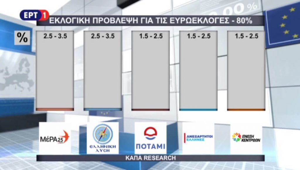 Η εκτίμηση της Καπα Research για το αποτέλεσμα των ευρωεκλογών, στο 80% όσων μετείχαν έχει ως εξής: