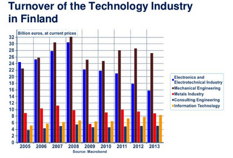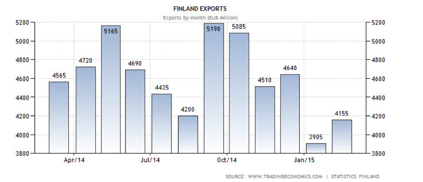 Η Φινλανδία στηρίζεται ευρέως στις εξαγωγές προϊόντων και υπηρεσιών οι οποίες αγγίζουν το 40% του ΑΕΠ της. Συγκριτικά αναφέρεται ότι οι Ελληνικές εξαγωγές κινούνται γύρω στο 10% του ΑΕΠ.