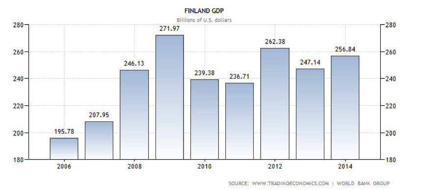 Η Φινλανδία είναι μια χώρα με 5,4 εκατομμύρια κατοίκους και ΑΕΠ που αγγίζει τα 260 δισ. ευρώ. Το 68% του ΑΕΠ της προέρχεται από την παροχή υπηρεσιών όπου απασχολείται και το 70% του εργατικού της δυναμικού. Πρωτεύουσά της είναι το Ελσίνκι με περίπου 1 εκατομμύριο κατοίκους.