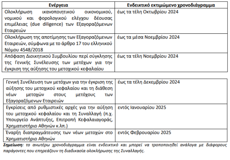 4) κατωτέρω παρατίθεται ενδεικτικό χρονοδιάγραμμα των βασικών ενεργειών για την ολοκλήρωση της Συναλλαγής, η οποία επί του παρόντος αναμένεται να ολοκληρωθεί εντός του πρώτου τριμήνου του 2025: