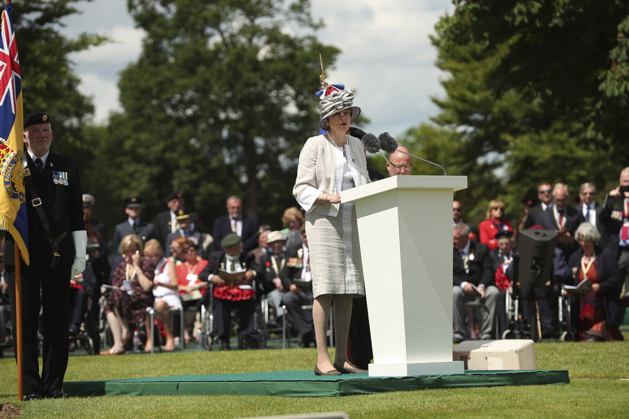 Η Τερέζα Μέι δεν έκανε καμία αναφορά στην προσεχή αποχώρησή της από τον θώκο στην ομιλία της, με την οποία χαιρέτισε το «θάρρος» και την «αυταπάρνηση» 156.000 ανθρώπων, εκ των οποίων 83.000 από το Ηνωμένο Βασίλειο και την Κοινοπολιτεία, που αποβιβάστηκαν στη Νορμανδία την «D-Day», την ημέρα της Απόβασης.