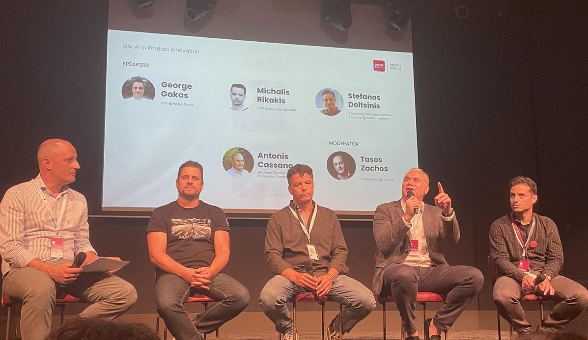 Ένα από τα πιο «καυτά» θέματα που τέθηκαν επί τάπητος είναι το πώς η τεχνητή νοημοσύνη επαναπροσδιορίζει τον τρόπο με τον οποίο οι εταιρείες παράγουν τα προϊόντα τους. Στο πάνελ «GenAI in Product Innovation», το οποίο συντόνισε ο Τάσος Ζάχος, Editor in Chief του Fortune Greece, τοποθετήθηκε ο Γιώργος Γάκας, Chief Insurance Officer της Hellas Direct, ο Μιχάλης Ρικάκης, SVP Product της Workable, ο Αντώνης Κασσάνο, Υπεύθυνος για το Business Development και την Καινοτομία στη Uni Systems, και ο Στέφανος Δολτσίνης, Technology Manager- Machine Learning | Data & AI της Kaizen Gaming.