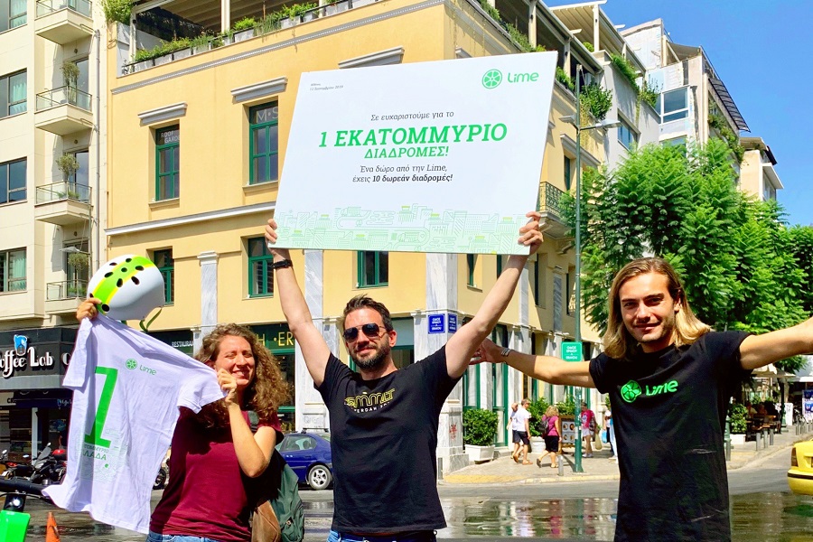 Στη χώρα μας, η Lime ξεκίνησε τη λειτουργία της πριν 9 μήνες και μέχρι σήμερα οι χρήστες των ηλεκτρικών πατινιών της εταιρείας έχουν πραγματοποιήσει περισσότερες από 1 εκατομμύριο βόλτες καλύπτοντας 6,2 εκατομμύρια χιλιόμετρα σε Αθήνα, Θεσσαλονίκη, Ρέθυμνο και Ηράκλειο. Η συνολική απόσταση που διανύθηκε στην Ελλάδα απέτρεψε την εκπομπή 780 κυβικών τόνων διοξειδίου του άνθρακα στην ατμόσφαιρα και εξοικονόμησε περισσότερα από 330 χιλιάδες λίτρα βενζίνης.