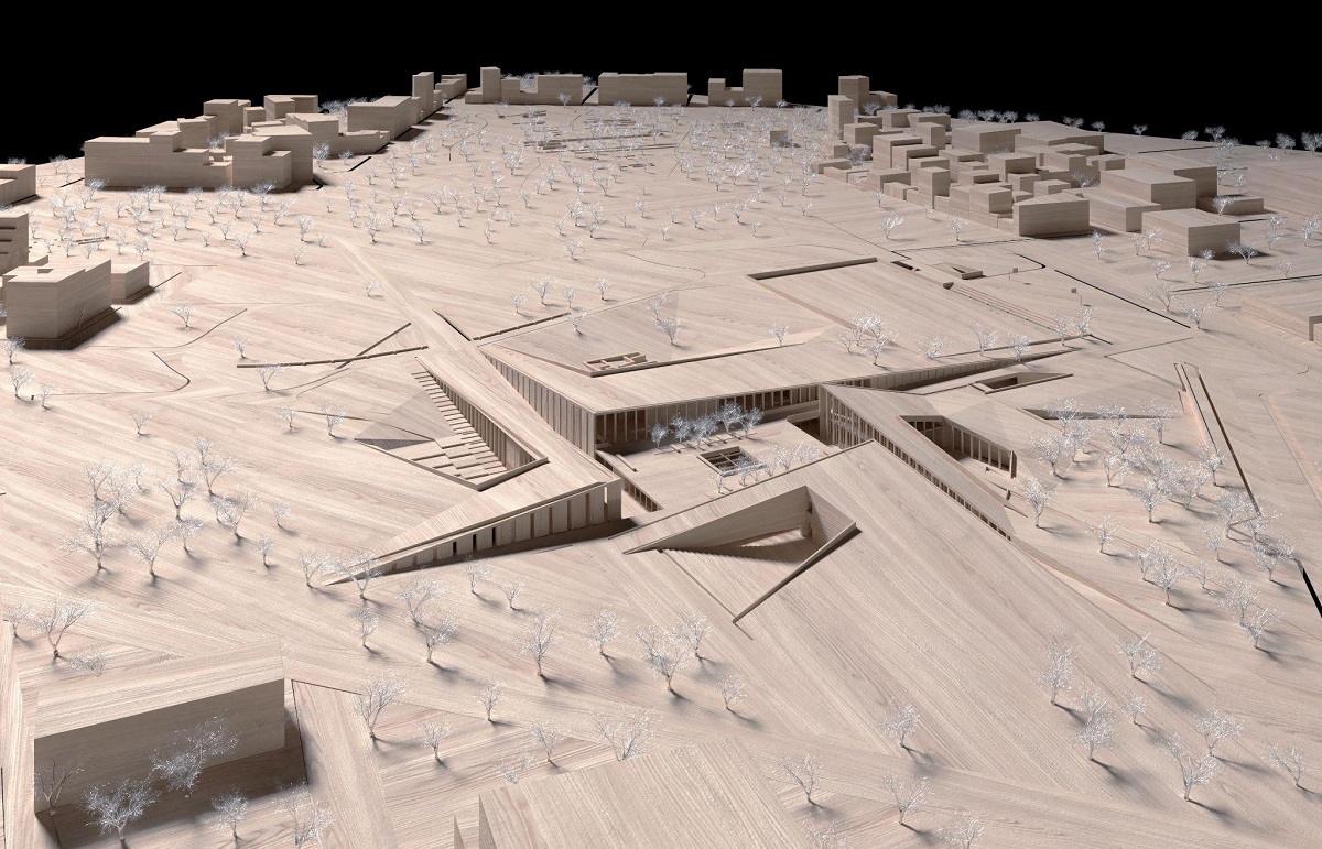 Η δομή των αρχαίων ελληνικών ναών είχε στο κέντρο της ένα άδυτο όπου οι άνθρωποι δεν είχαν τη δυνατότητα να εισέλθουν. Στο μουσείο λοιπόν φτιάξαμε το εντελώς ανάποδο: φυγοκεντρήσαμε αυτή τη γεωμετρία και τα τέσσερα πτερά του αρχαίου ελληνικού ναού που προφύλασσαν το άδυτο τα στρίψαμε κατά 90 μοίρες δημιουργώντας τα τέσσερα όρια του τετράγωνου χώρου. Με αυτόν τρόπο το άδυτο μεταμορφώνεται σε κάτι δημόσιο, ανοιχτό, όπου μπορούν να μετέχουν όλοι.