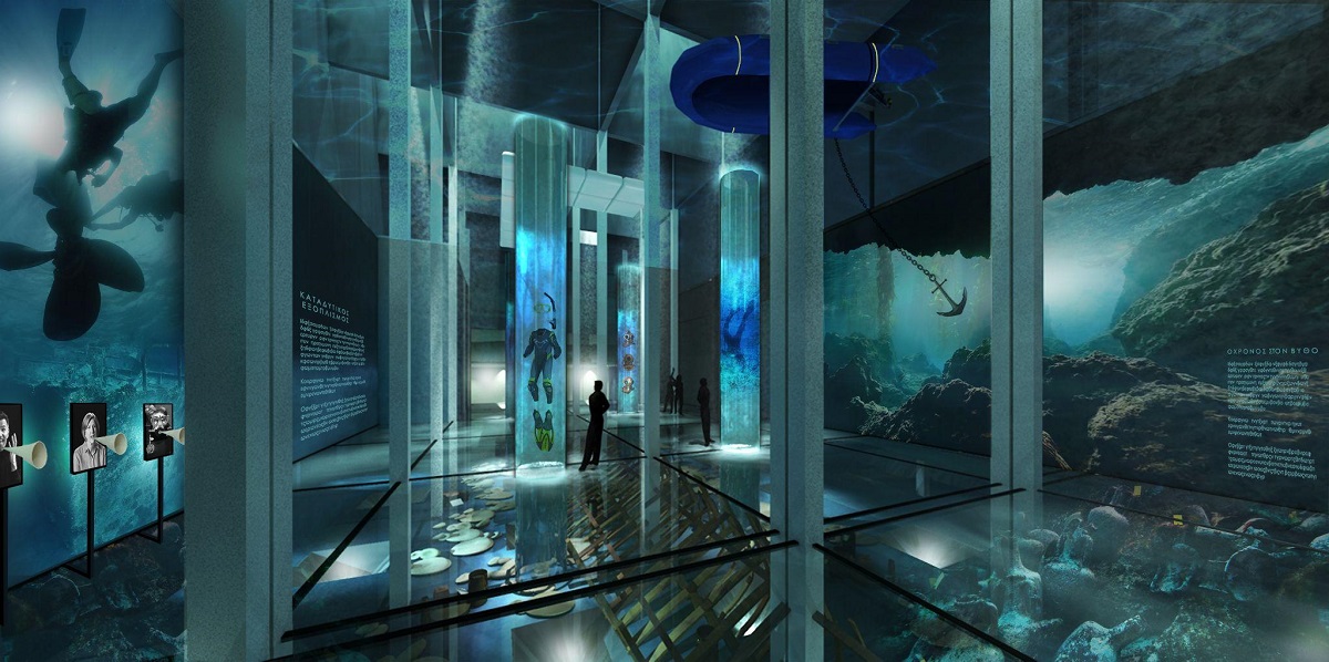 Ήταν μια περίεργη συνομιλία. Η δυσκολία που είχαμε σε αυτό το έργο ήταν να καταφέρουμε να φιλοξενήσουμε πολύ μεγάλα εκθέματα, να φτιάξουμε το περιβάλλον όπου θα υπήρχαν τα αντίγραφα των καραβιών. Αυτό ήταν αδύνατον να γίνει στο υπάρχον σιλό, οπότε προτείναμε η δημιουργία ενός επίπεδου κτηρίου δίπλα στο σιλό, το οποίο συμβόλιζε με μια μεγάλη οριζόντια γραμμή στην οροφή του τη στάθμη του νερού και της θάλασσας. Με άλλα λόγια τόνιζε ότι όλα τα εκθέματα, οι ενάλιες αρχαιότητες βρίσκονται συμβολικά κάτω από το νερό κι αυτό ήταν η αφετηρία της σκέψης μας.