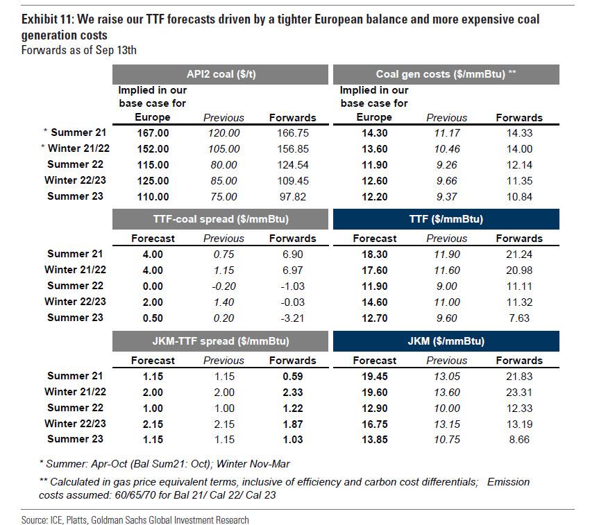 Επιπλέον, δεδομένου του ράλι στις διεθνείς τιμές του άνθρακα, η Goldman Sachs αυξάνει την εκτίμησή της για την παραγωγή άνθρακα τον χειμώνα στα 13,60 δολ./mmBtu από 10,50 δολ.