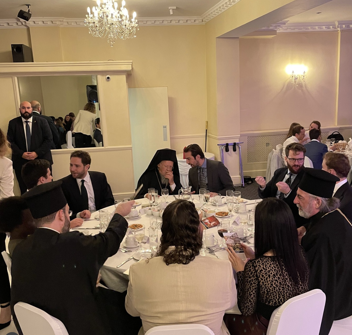 Στο Λονδίνο σε δείπνο με τον Οικουμενικό Πατριάρχη Βαρθολομαίο και τον Αρχιεπίσκοπο Θυατείρων και Μεγάλης Βρετανίας Νικήτα, υπό την αιγίδα της Αρχιεπισκοπής.