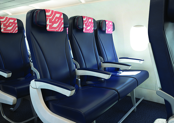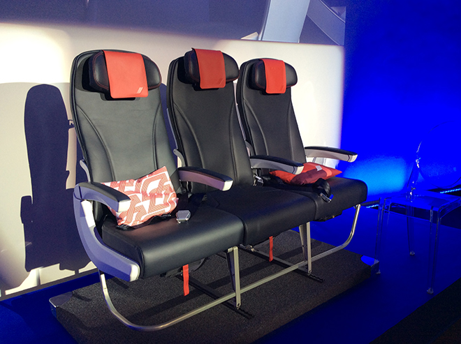 Τα νέα καθίσματα είναι δερμάτινα, «δανείζονται» στοιχεία άνεσης και πολυτέλειας από εκείνα των πτήσεων long haul, έχουν ανάκληση μέχρι 20 μοίρες, ενίσχυση για να μην νιώθεις τυχόν χτυπήματα από τον πίσω επιβάτη, τα ενδιάμεσα χερούλια αποσύρονται εντελώς ανάμεσα στα καθίσματα, το μαξιλάρι ρυθμίζεται σε ύψος και έχει βολικά «αυτιά» για τη στήριξη του κεφαλιού, το τραπεζάκι έχει ανεξάρτητη θήκη για ποτήρι όταν είναι κλειστό.