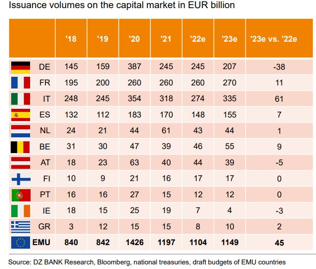 Συνολικά, υπολογίζουν ότι η ΕΚΤ δεν θα επανεπενδύσει 130 δισ. ευρώ ομολόγων που λήγουν κατά τη διάρκεια του 2023. «Επομένως, αυτό το ποσό θα πρέπει να απορροφηθεί από την αγορά, κάνοντας το περιβάλλον δανεισμού για τις χώρες της Ευρωζώνης πιο δύσκολο».