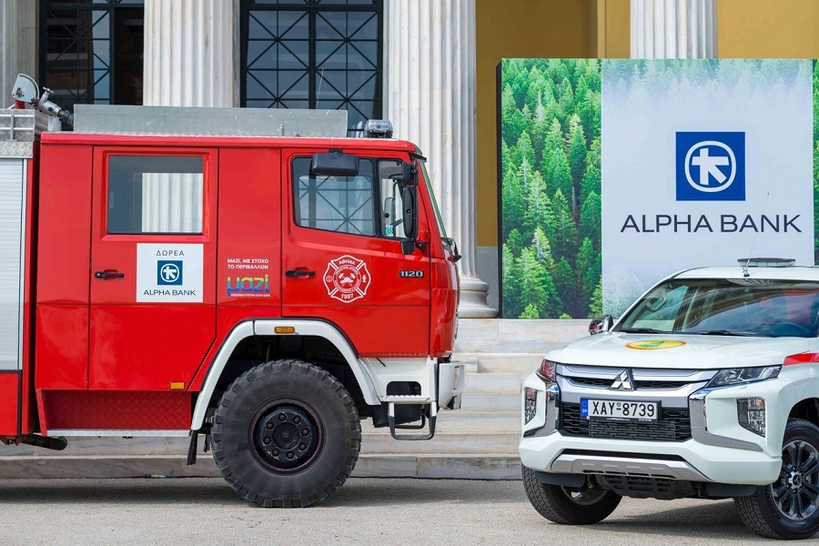 Την ισχυρή της δέσμευση για την προστασία του περιβάλλοντος κάνει πράξη για μία ακόμη φορά η Alpha Bank, στηρίζοντας έμπρακτα τις τοπικές κοινωνίες στην αντιμετώπιση των πυρκαγιών, με τη δωρεά πυροσβεστικών οχημάτων σε εθελοντικούς συλλόγους πυροσβεστών και την οικονομική υποστήριξη του έργου δασοπυρόσβεσης σε περιοχές της χώρας.