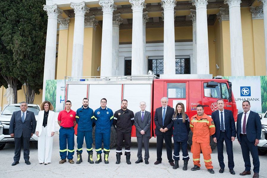 Σε ειδική εκδήλωση που έλαβε χώρα στον προαύλιο χώρο του Ζαππείου Μεγάρου, παρουσία του Υπουργού Κλιματικής Κρίσης και Πολιτικής Προστασίας κ. Χρήστου Στυλιανίδη, ο Πρόεδρος του Διοικητικού Συμβουλίου της Alpha Bank κ. Βασίλειος Ράπανος παρέδωσε 6 πυροσβεστικά οχήματα, ενισχύοντας τον στόλο οχημάτων των Συλλόγων Εθελοντικών Δυνάμεων Δασοπροστασίας & Διάσωσης Προκοπίου και Καρύστου Ευβοίας, του Εθελοντικού Συλλόγου Πυροπροστασίας Δασών Λουτρακίου – Περαχώρας, της Ομάδας Αντιμετώπισης Καταστροφών 4x4 Μεσσηνίας, των Εθελοντικών Δυνάμεων Δασοπυρόσβεσης & Διάσωσης / Κλιμάκιο Ροδόπολης Αττικής και της Εθελοντικής Ομάδας Καπανδριτίου Πολυδενδρίου Αττικής.