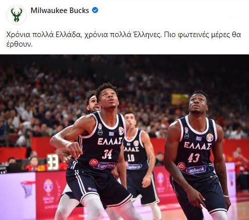 Οι Μιλγουόκι Μπακς, είπαν χρόνια πολλά στην Ελλάδα λόγω της εθνικής επετείου και έστειλαν τη συμπαράστασή τους στον αγώνα που δίνει η χώρα με τον κορωνοϊό.
