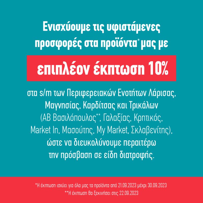 Σήμερα, συνεχίζει την προσπάθεια με μία νέα δράση υποστήριξης, ώστε να διευκολύνει περαιτέρω την πρόσβαση σε προϊόντα διατροφής, με την ενίσχυση των υφισταμένων προσφορών με επιπλέον έκπτωση 10%.