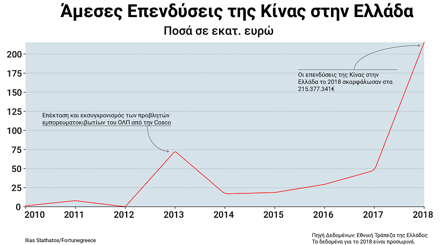 Η εκρηκτική άνοδος των κινεζικών επενδύσεων στην Ελλάδα σε ένα γράφημα
