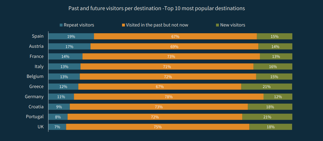 Η Ελλάδα λαμβάνει ένα σχετικά ισορροπημένο μείγμα μεταξύ των παλιών και νέων επισκεπτών.