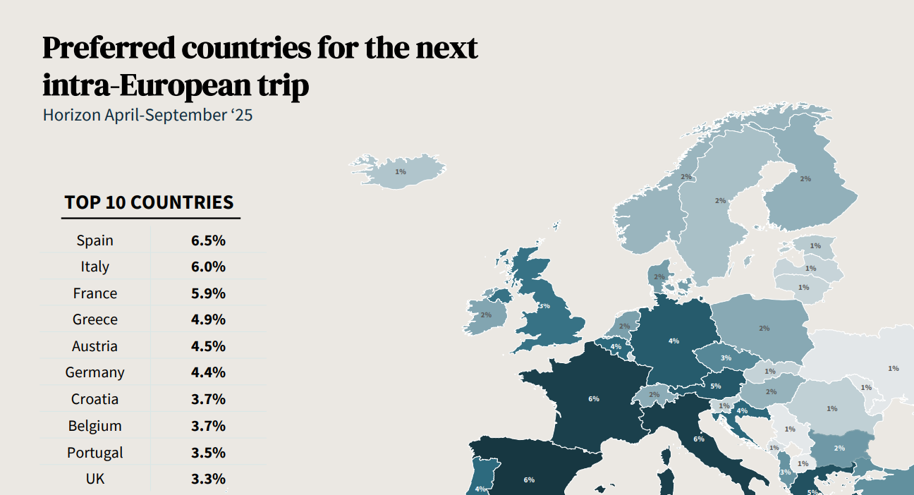Παρά τη μέτρια μείωση της συνολικής πρόθεσης για ταξίδια, οι Ευρωπαίοι ταξιδιώτες επιδεικνύουν εμπιστοσύνη στις ταξιδιωτικές τους επιλογές.