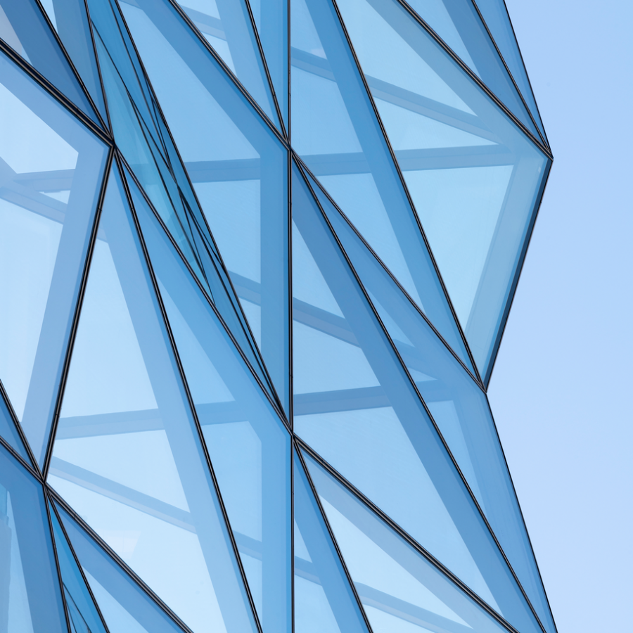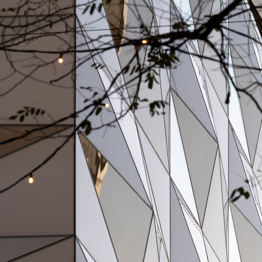 Καθώς ο ήλιος πέφτει στο κτίριο, το χρώμα, η αντανάκλαση του φωτός και οι σκιές στο γυαλί δίνουν ζωή στην καινοτόμα πρόσοψη, σαν ένα κόσμημα. Η πρόσοψη είναι διανθισμένη με διαφανή πάνελ που επιτρέπουν αφ’ενός στο φυσικό φως να εισέρχεται στους χώρους των καταστημάτων και αφ’ετέρου στους πελάτες να βλέπουν προς τα έξω.
