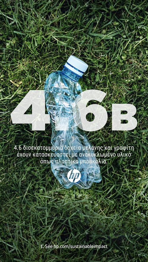 Η ΗΡ αυτήν τη στιγμή χρησιμοποιεί πάνω από 4,7 δισεκατομμύρια ανακυκλωμένα πλαστικά μπουκάλια για την κατασκευή νέων αυθεντικών δοχείων μελάνης ΗΡ.