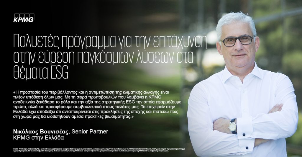 Η KPMG εγκαινιάζει πολυετές πρόγραμμα για να επιταχύνει την εύρεση των παγκόσμιων λύσεων στα θέματα ESG