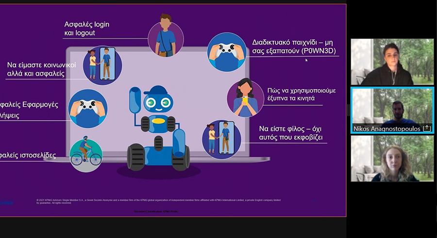 Ο Δρ. Θοδωρής Στεργίου, Αναπληρωτής Γενικός Διευθυντής, KPMG στην Ελλάδα σχολιάζει «Δεν μπορούμε να φανταστούμε έναν διασυνδεδεμένο κόσμο όπου τα νεότερα μέλη της κοινωνίας μας δεν λαμβάνουν τα κατάλληλα εφόδια ώστε να προστατευτούν από κυβερνοεπιθέσεις και άλλες δυσάρεστες καταστάσεις στο διαδίκτυο. Η πρωτοβουλία αυτή, δεν αποτελεί άλλη μια δράση κοινωνικής υπευθυνότητας της KPMG, αλλά και μια ουσιαστική δέσμευσή μας ως άνθρωποι, γονείς και επαγγελματίες για τη δημιουργία ενός ασφαλέστερου ψηφιακού χώρου».