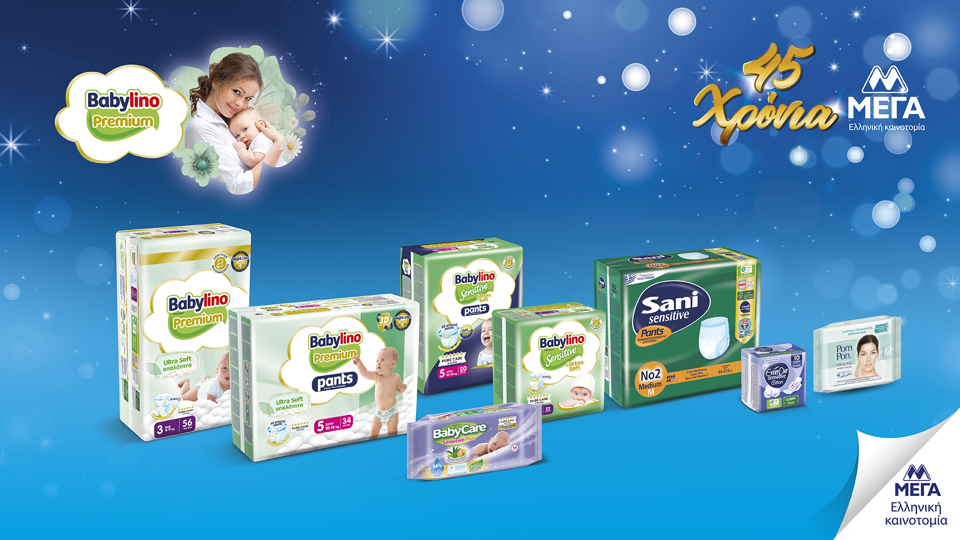 Την πρόσφατη Παγκόσμια Γιορτή της Μητέρας, στις 11 Μαΐου, επέλεξε η ΜΕΓΑ για να λανσάρει τις νέες βρεφικές πάνες Babylino Premium. Μια βρεφική σειρά γεμάτη φροντίδα, ασφαλή προστασία και απίστευτα απλά υλικά, σχεδιασμένη με βάση έρευνες καταναλωτών για το πώς θα ήθελαν την ιδανική πάνα. Προσεκτικά μελετημένη σε όλα της, από το έμπειρο τμήμα επιστημόνων Σχεδιασμού και Ανάπτυξης Προϊόντων της 100% ελληνικής εταιρείας και ελεγμένη σε διεθνώς αναγνωρισμένα, αυστηρά δερματολογικά εργαστήρια του εξωτερικού.