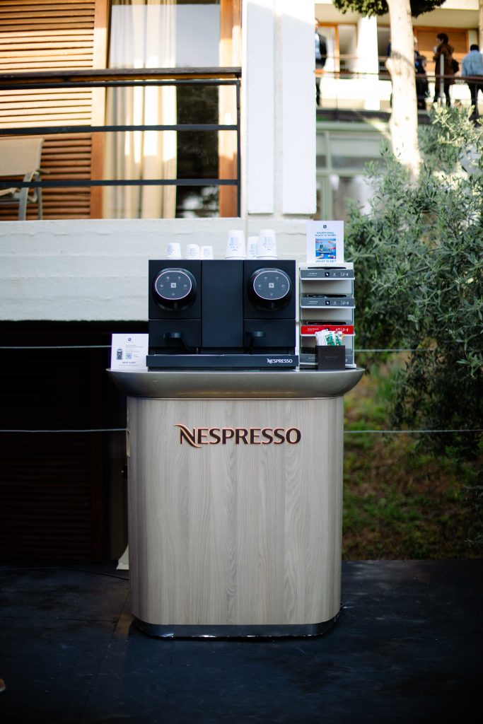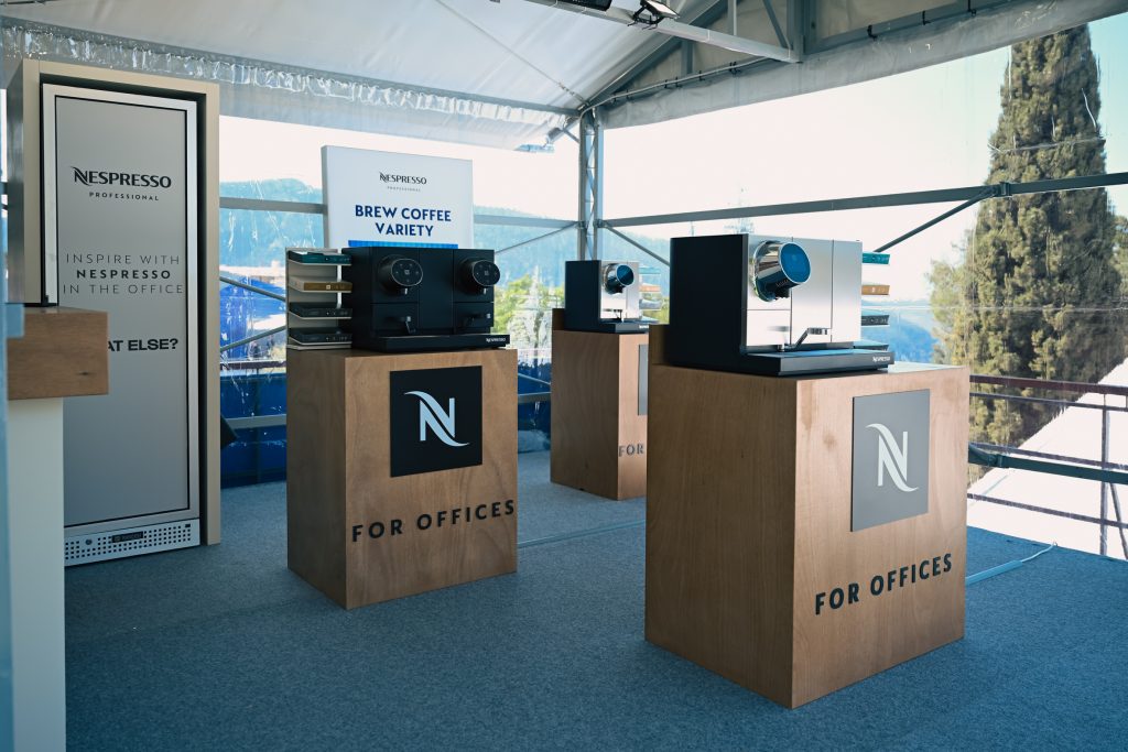 Σε ένα περιβάλλον γεμάτο ένταση, ομιλίες και διαρκείς επαφές μεταξύ CEOs, επενδυτών, στελεχών και δημοσιογράφων, μεταξύ άλλων, το lounge της Nespresso Professional στο Delphi Economic Forum λειτουργεί ως μια όαση premium φιλοξενίας. Με ένα μινιμαλιστικό, κομψό design το coffee corner δεν έχει τη μορφή ενός παραδοσιακού «περιπτέρου», αλλά ενός πολυτελούς corporate lounge. Εκεί, η Nespresso, χρησιμοποιώντας το branding της —με κυρίαρχο το άρωμα του καφέ και την άψογη εξυπηρέτηση από τα στελέχη της, επιβεβαιώνει τη θέση της ως το απόλυτο brand καφέ για τις εταιρείες.