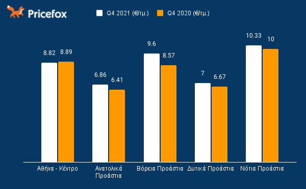 Γράφημα με τιμές ενοικίων ανά τετραγωνικό μέτρο στην Αθήνα