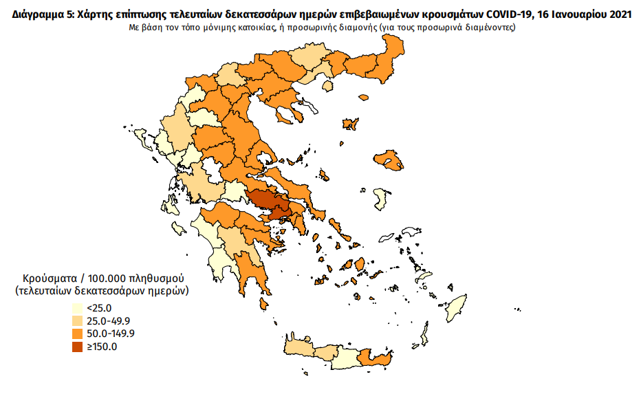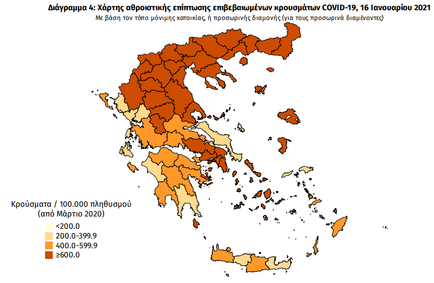 Η κατανομή των κρουσμάτων covid-19 που ανακοίνωσε σήμερα ο ΕΟΔΥ έχει ως εξής: