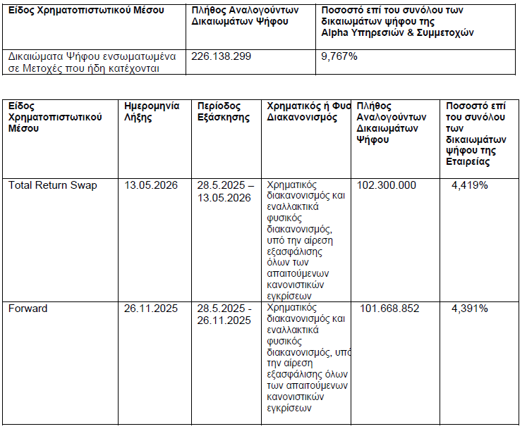 Με την προϋπόθεση της λήψης όλων των απαραίτητων εποπτικών εγκρίσεων, η κίνηση αυτή μπορεί να οδηγήσει στην απόκτηση 5.859.978 επιπλέον κοινών μετοχών με δικαίωμα ψήφου, που αντιστοιχούν σε περίπου 0,253% των συνολικών δικαιωμάτων ψήφου της Alpha Bank. Μετά την ολοκλήρωση της διαδικασίας, η UniCredit θα κατέχει συνολικά 29,794% του μετοχικού κεφαλαίου της τράπεζας.