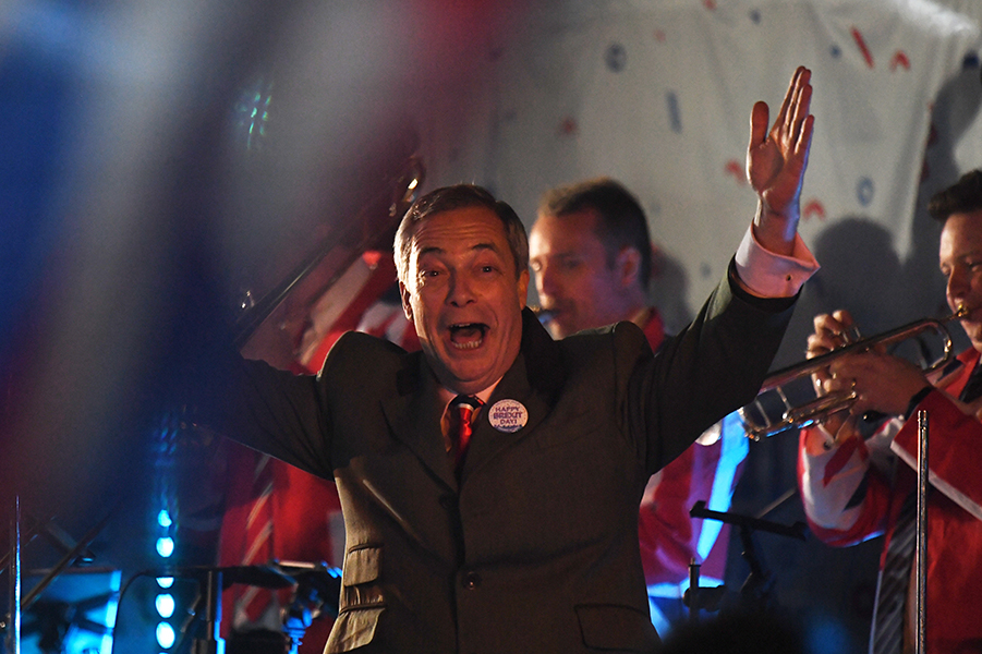 «Ο πόλεμος τελείωσε: κερδίσαμε», δήλωσε ο Νάιτζελ Φάρατζ του κόμματος του Brexit απευθυνόμενος στο πλήθος. «Αυτή είναι η πιο σημαντική στιγμή στη σύγχρονη ιστορία του μεγάλου έθνους μας».