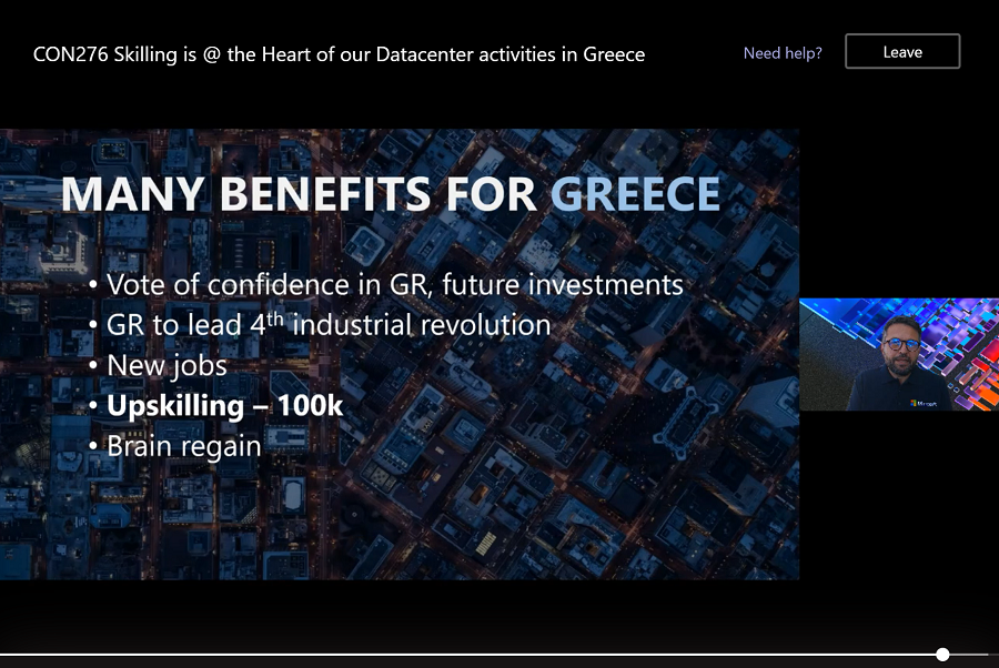 Το φετινό Ignite ήταν το πρώτο στο οποίο η Ελλάδα είχε το δικό της session, το οποίο ήταν αφιερωμένο στην πρωτοβουλία GR for GRowth και συγκεκριμένα στο Skilling που αποτελεί βασικό πυλώνα της επένδυσης της εταιρείας στη χώρα μας. Ιδιαίτερη αναφορά έγινε στις πιστοποιήσεις της Microsoft και στην κοινότητα Certified Professionals, που αριθμεί πάνω από 900 μέλη και δίνει τη δυνατότητα σε επαγγελματίες τεχνολογίας να αναπτύξουν τις ψηφιακές δεξιότητες που απαιτούνται για να ανταποκριθούν στην ολοένα και αυξανόμενη ζήτηση για επαγγέλματα που σχετίζονται με το cloud computing.