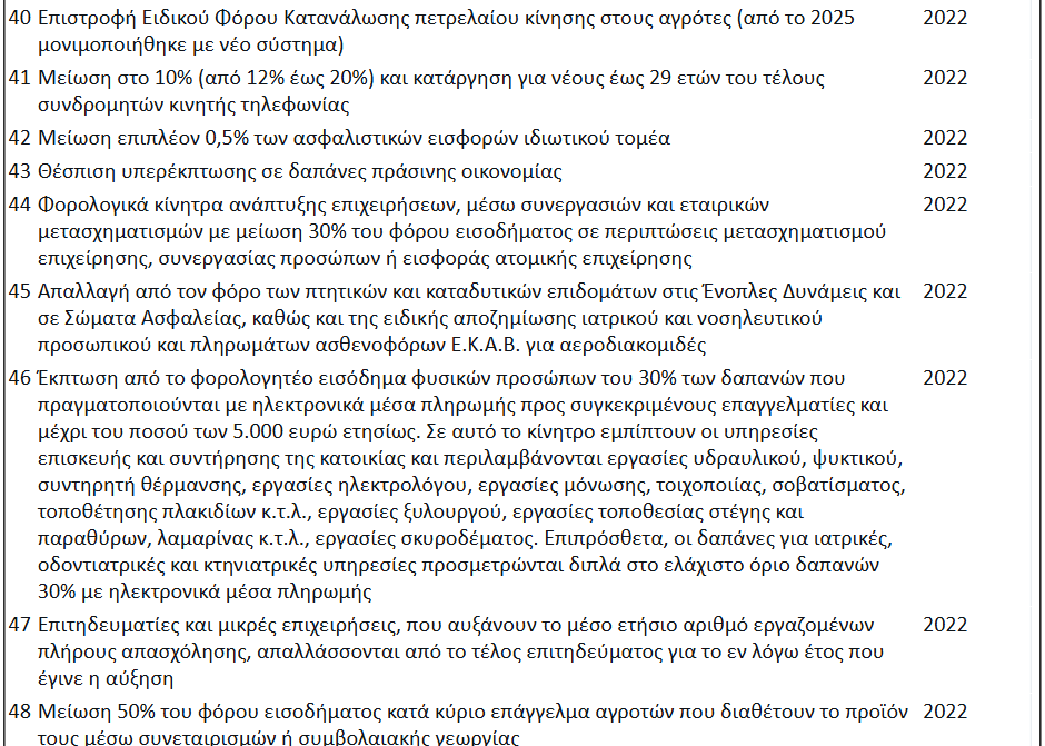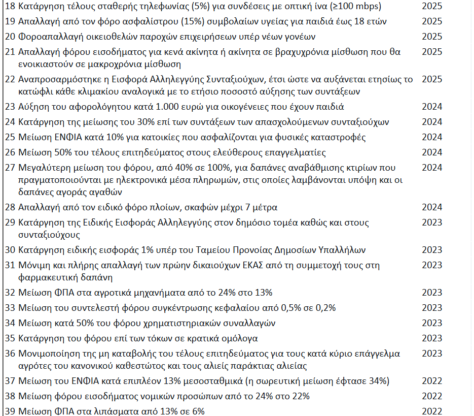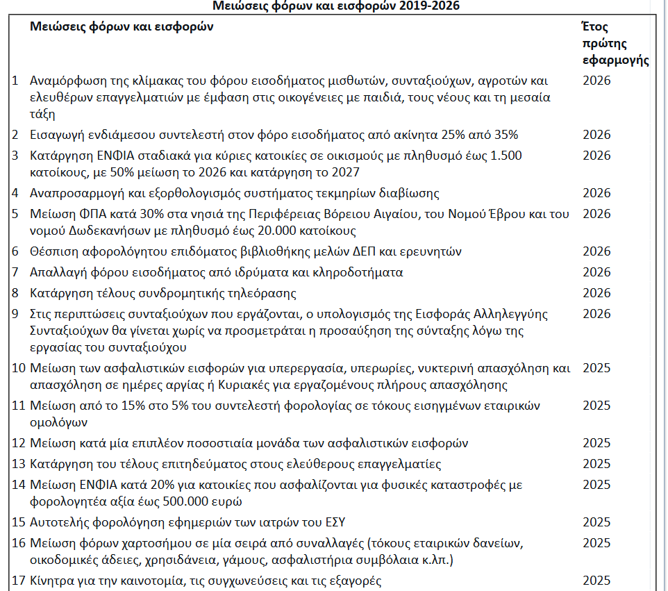 Σε 83 μειώσεις φόρων και εισφορών συνολικά έχει προχωρήσει η κυβέρνηση από την αρχή της θητείας της το 2019, με τους νέους φόρους που μειώνονται από την 1η Ιανουαρίου 2026, όπως ανακοινώθηκαν στη ΔΕΘ.