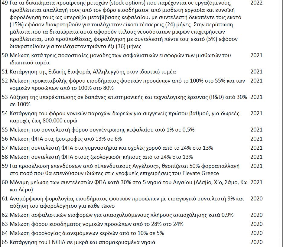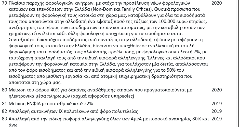 Σύμφωνα με το Υπουργείο Εθνικής Οικονομίας και Οικονομικών, ανάμεσα στις νέες παρεμβάσεις, περιλαμβάνονται: