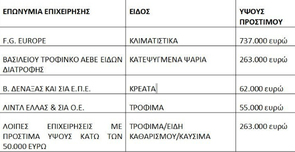 Σύμφωνα με τις διατάξεις του άρθρου 54 του ν. 5045/2023, περί ανακοίνωσης των επωνυμιών των επιχειρήσεων στις οποίες επιβλήθηκε πρόστιμο ύψους μεγαλύτερο από 50.000 ευρώ, επιβλήθηκαν τα ακόλουθα πρόστιμα ως ακολούθως: